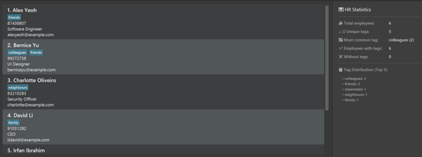 Tip: The stats panel is always visible and updates in real-time when you add, edit, or delete employees. No command is needed to view statistics!